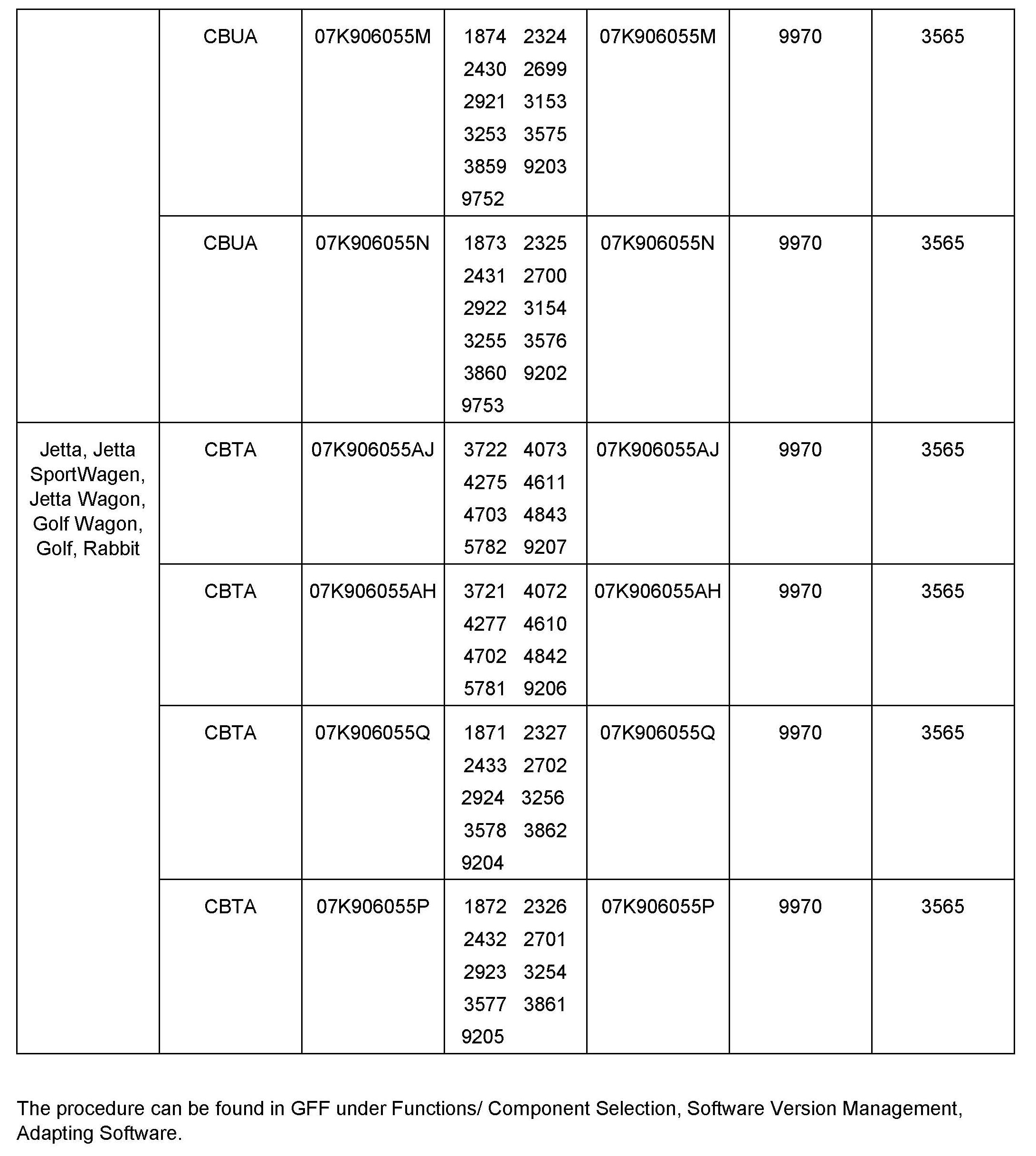 ^ Update the Engine Control Module using the SVM Unit code as listed in the table.