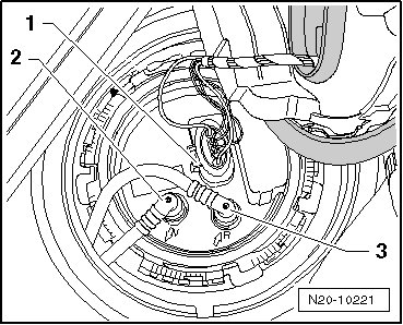 - Disconnect supply line - 1 - from fuel filter input.
