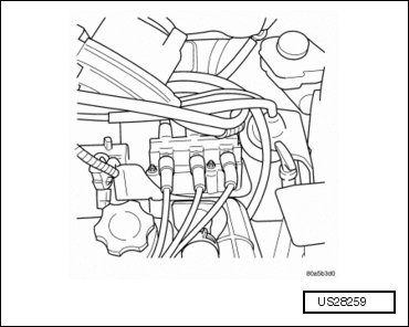 - Disconnect the wiring harness electrical connector from the ignition coil.