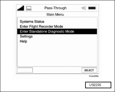 - On the StarMOBILE(R) device, select "Enter Standalone Diagnostic Mode" (use the right function key).