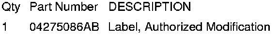 - Type the necessary information on the "Authorized Modification Label" (p/n 04275086AB) and attach near the VECI label (See Section 3. Refer to => [ Authorized Modification Label ] for details).