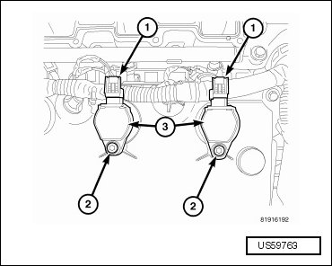 - Install the ignition coil (3) and bolt (2). Tighten the bolt to 8 Nm (71 in lbs).