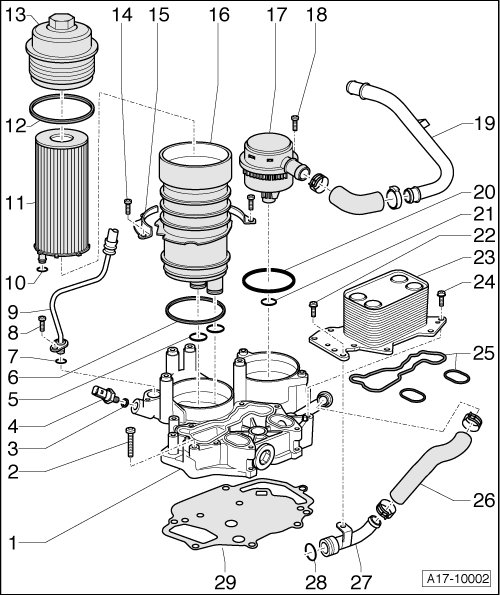 17 - Oil Pressure Switch -F22- /Oil Pressure Switch -F1- => [ Upper Oil Pan Assembly Overview ] See Image Below.