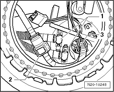 - Disconnect the fuel pump connector - 1 - from the flange.