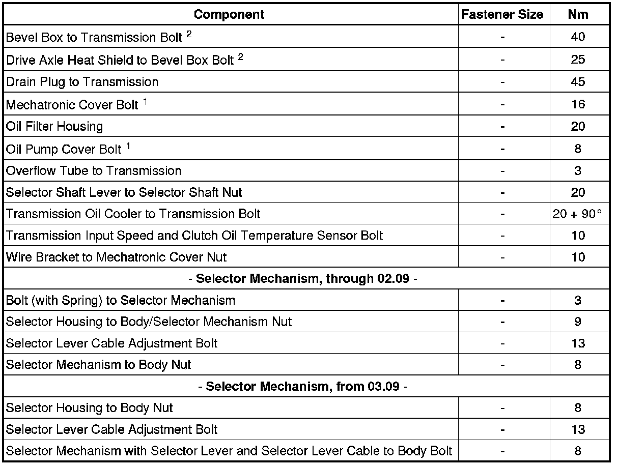 Mechatronic Unit Bolt Tightening Sequence and Specification