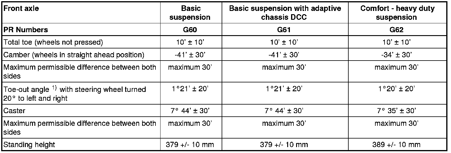 Wheel Alignment Specified Values