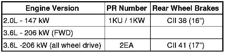 • The following tables explain the PR numbers. These are important for the combination brake caliper/brake disc and brake pad.