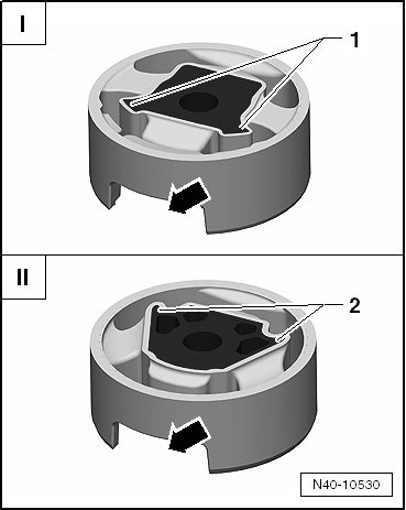 • There are two different versions of the pendulum support bonded rubber bushing: the T version - I - and the V version - II -.