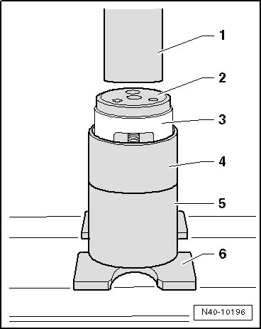 - Press the bonded rubber bushing - 1 - in until dimension - a - has been obtained.