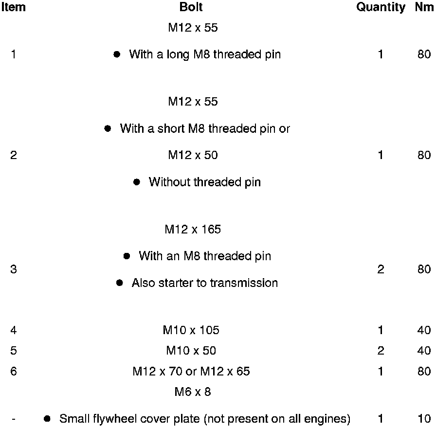 Transmission to Engine Tightening Specifications