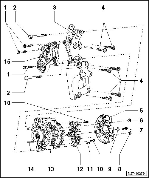 Tightening specification, refer to => [ Voltage Regulator, Bosch ] Voltage Regulator, Bosch or => [ Voltage Regulator, Valeo ] Voltage Regulator, Valeo.