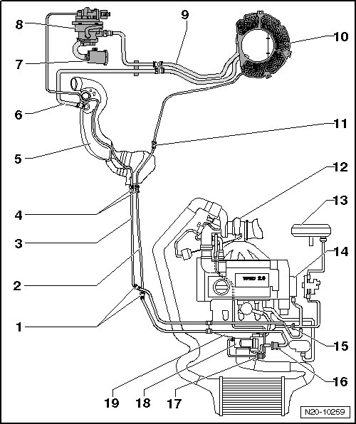 • To the EVAP canister purge regulator valve 1 (N80).