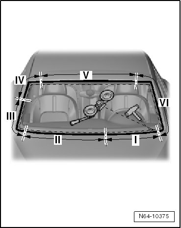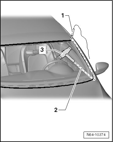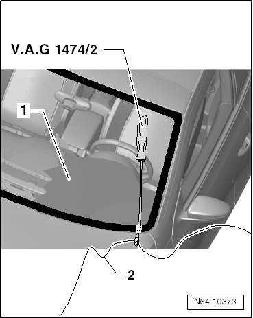- Push the (V.A.G 1474/8) - 1 - in between the windshield and instrument panel.