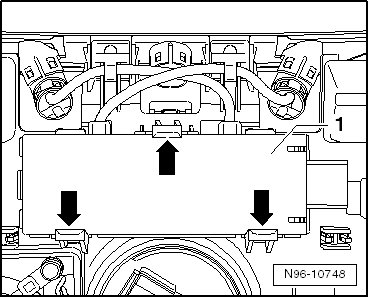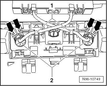 - Release the clips - arrows - and pull both interior monitoring sensors - 2 - out of the interior lamp.