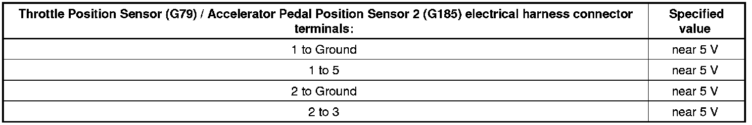 - Replace the Accelerator Pedal Position Sensor (G79) / Accelerator Pedal Position Sensor 2 (G185). Refer to the Repair Information.