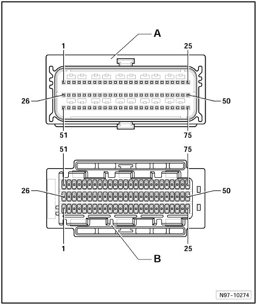 B - 75-Pin Connector -T75-, on wiring harness
