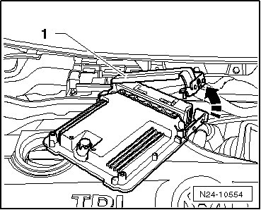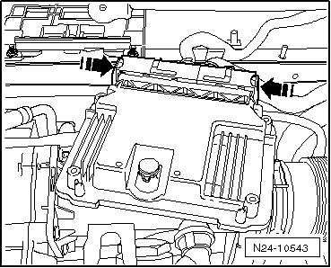 - Push the retaining frame in the - direction of the arrow - downward and remove the ECM.