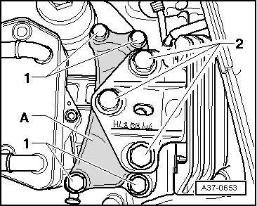 - Tighten the transmission mount bracket to transmission bolts - 1 - to 40 Nm + 90° (1/4) additional turn.