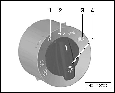 - Turn the headlamp switch - 4 - to the automatic headlamp control position - 2 -.