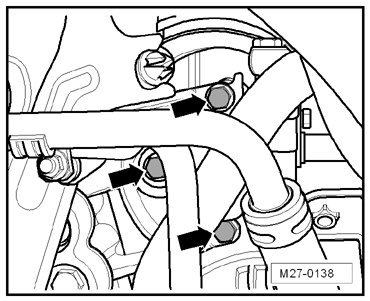 - Remove the bolts - arrows - from the power steering pump.