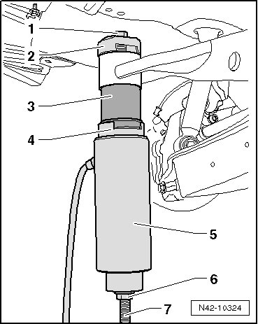 - Lower the subframe 10 cm using the engine-/gearbox jack (V.A.G 1383 A).
