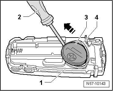- Install the battery - 2 -, with the positive pole facing upward, tilting it - arrow - into the mount - 3 - for the ignition key - 1 - (the positive pole is marked in the housing).