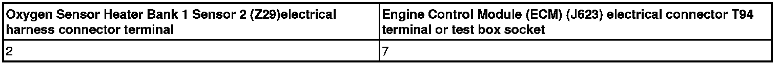 - Using a multimeter, check the Oxygen Sensor Heater Bank 1 Sensor 2 (Z29) terminals 1 to 2 for resistance.