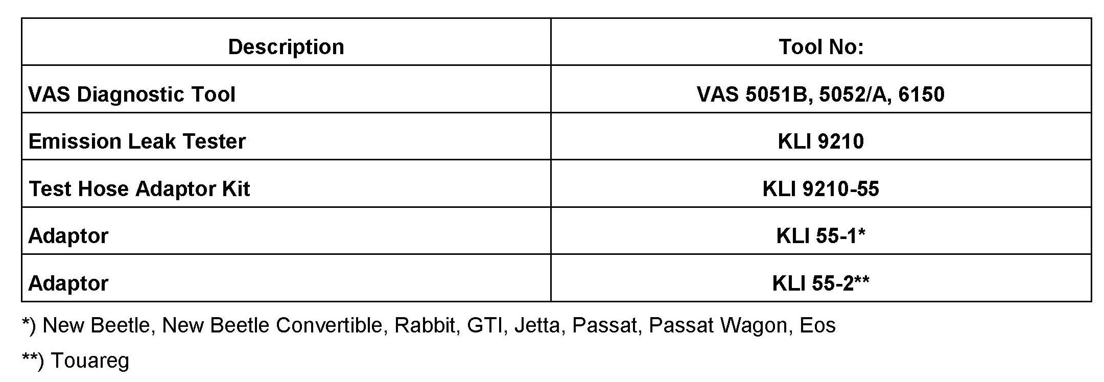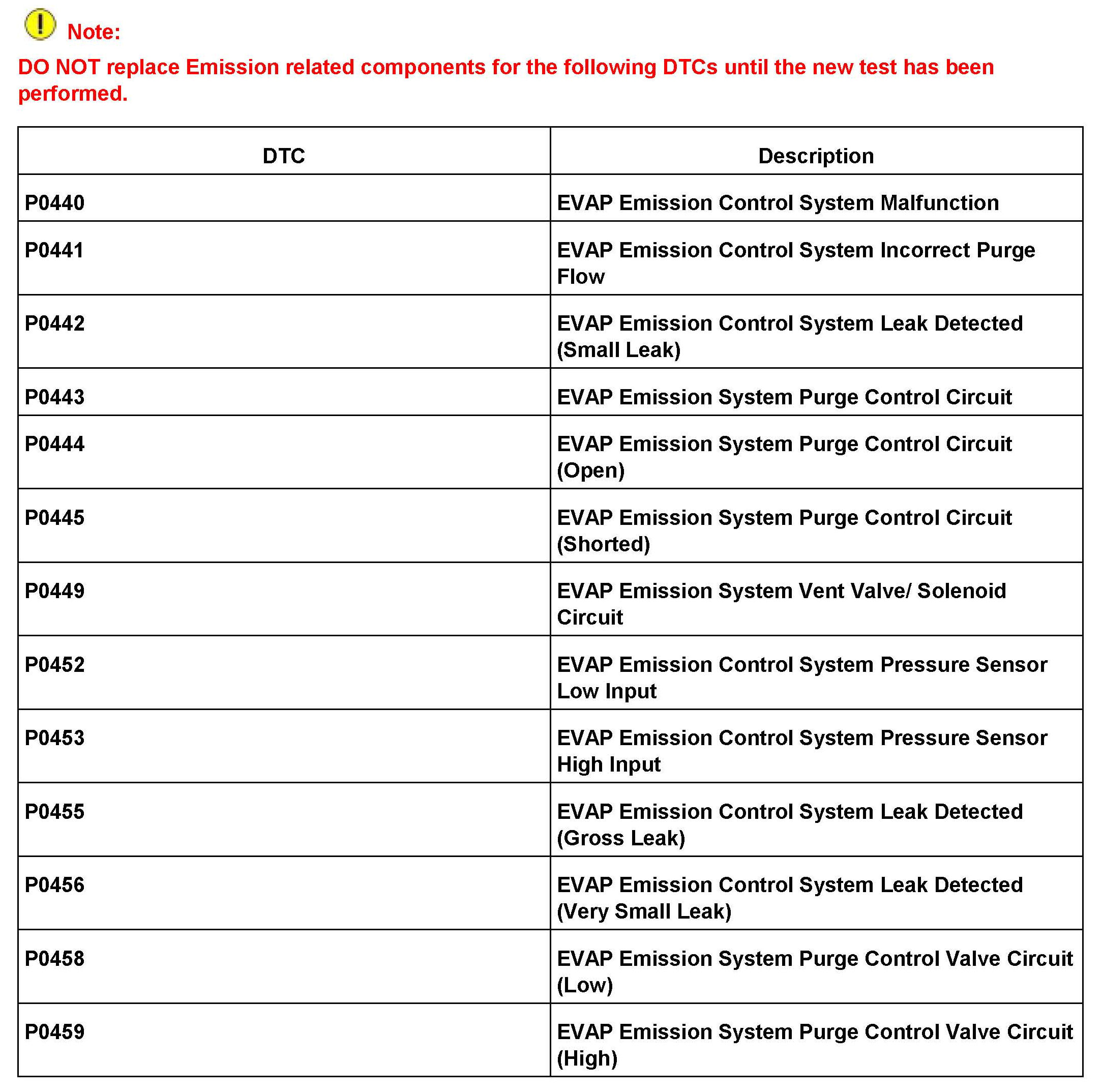 When diagnosing a vehicle with Evaporative Emission System DTCs listed, but not limited to the table below, see revised testing procedure in Repair Manual Group 20, Evaporative Emission (EVAP) system, checking for leaks, in ElsaWeb.
