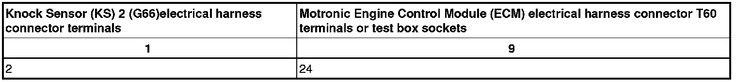 - Disconnect Knock Sensor (KS) 1 (G61) electrical harness connector- 1 - or Knock Sensor (KS) 2 (G66) electrical harness connector - 2 -.