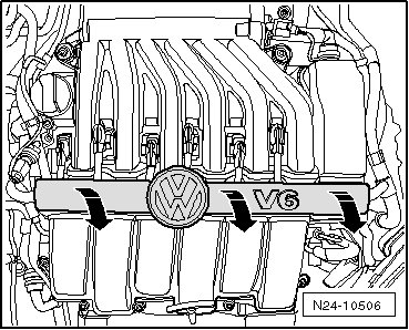 - Remove the ignition coil wiring harness cover strip in the - direction of the arrows -.