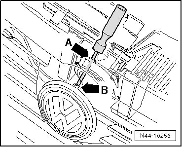- Guide a screwdriver through the opening - arrow A - and press the tab - arrow B - downward.