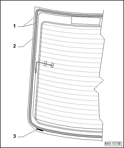• Markings - 1 - are made along the circumference of the rear window for applying the sealant - 2 -.