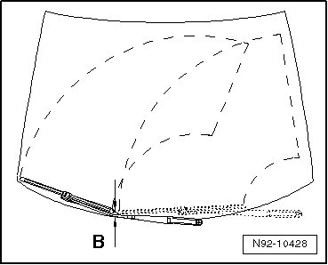 The distance - B - between the wiper blade and the upper edge of the plenum chamber cover must be 15 mm.