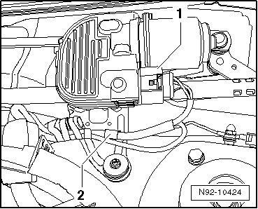 - Connect connector - 1 - to wiper motor connection until it engages.