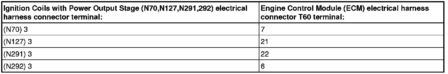 - Using a multimeter, Check the Ignition Coil electrical harness connector to the Engine Control Module (ECM) (J623) electrical harness connector T60 for an open circuit. refer to the Wiring Diagrams.