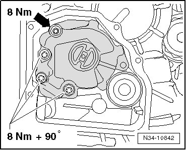 - Tighten the bolts in the specified sequence to 5 Nm + 90° (1/4) additional turn.