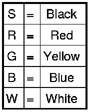 Note the letters and then match them to the color identification in the table