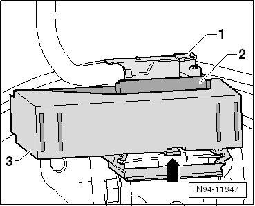 - Disconnect the connector - 1 - and remove the access/start authorization control module - 2 - from its mount - 3 -.