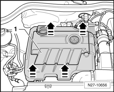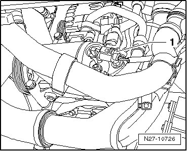 Before removing ribbed belt, mark the top side and direction of travel. When installing, pay attention to correct running direction and installation position. If the belt is installed in the opposite running direction or is positioned incorrectly, the belt will fail!
