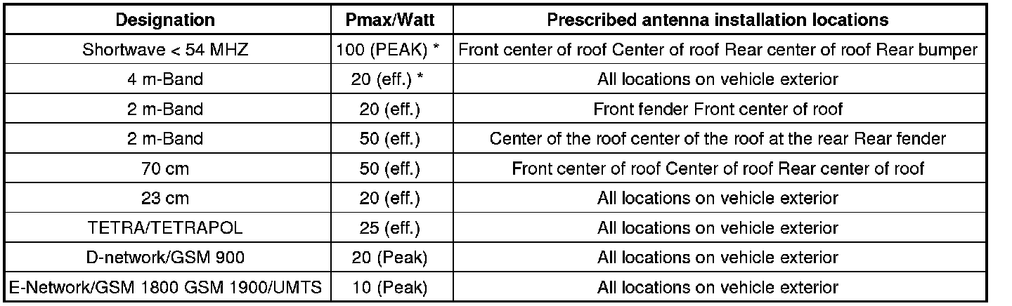 Deviations from these guidelines (location of antenna, frequency, output) are only permitted in special isolated cases after a single-case test carried out by the EMV center of VW AG in Wolfsburg.