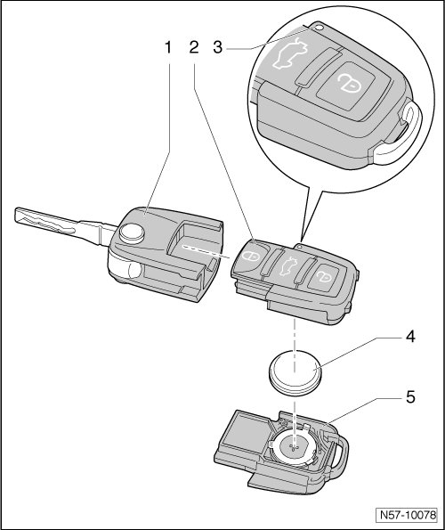 Central Locking, Folding Remote Control Key Battery Assembly Overview
