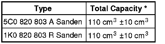 * This quantity of refrigerant oil is in a replacement A/C compressor and equates to the total capacity.