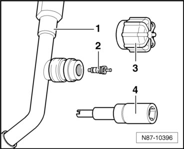 - Remove the valve insert - 2 - (2.4 ± 0.2 Nm) with the (T10364) - 4 - from the refrigerant line- 1 -.