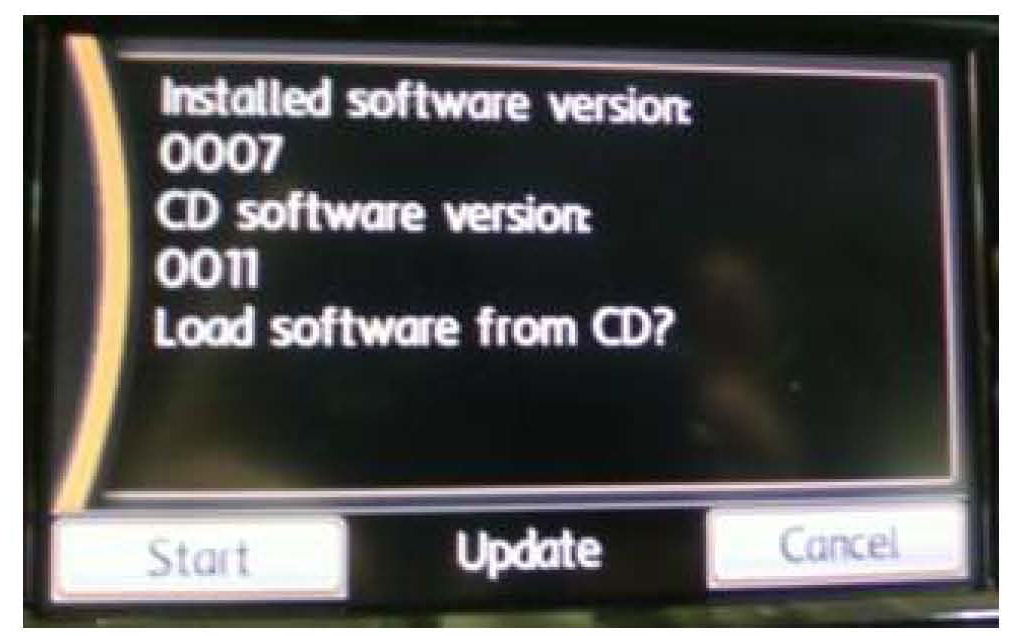 ^ Insert programming CD RNS315FLSH11 into the radio Press the Start icon on the screen