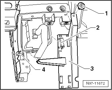- Loosen the comfort system central control module bracket - 3 - from the clamps - 4 - and pull it out of the guide- 2 -.