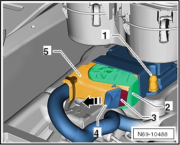 - Open the lever - 2 - and remove the connector - 5 -.