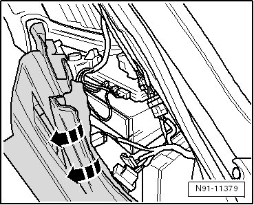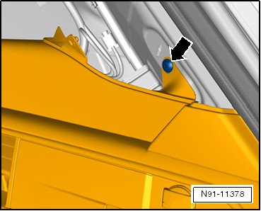 - Unclip the side trim panel on the side window and carefully push it slightly to the side in the - direction of the arrow -.