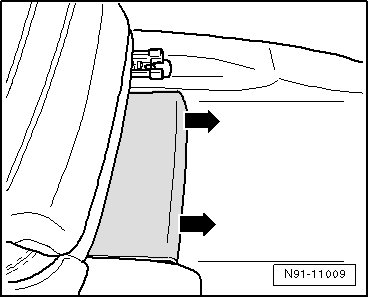 - Remove the cover under the seat in - direction of arrow -.