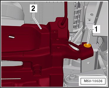 - Only remove the bolts - 1 - for the lock carrier - 2 - on the left and right longitudinal member.