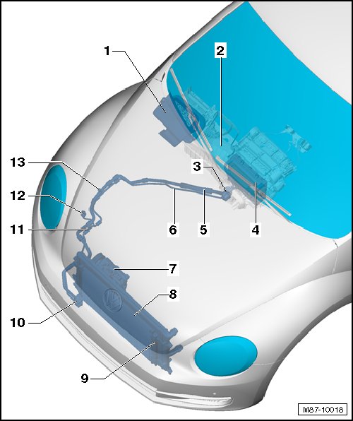 • Condenser, removing and installing 2.5L, refer to => [ Condenser ] Condenseror 2.0L , TDI, refer to => [ Condenser ] Condenser.